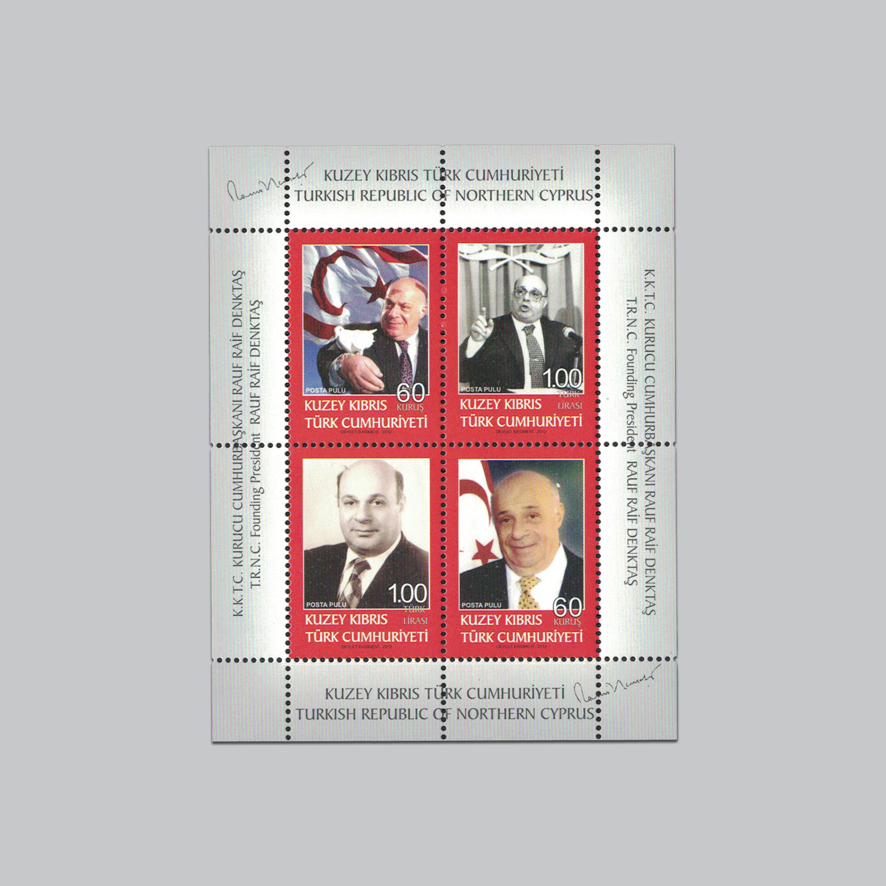 K.K.T.C. Kurucu Cumhurbaşkanı RAUF RAİF DENKTAŞ Anma Bloku T.R.N.C. Founding President RAUF RAİF DENKTAŞ Souvenir Sheet